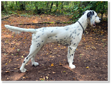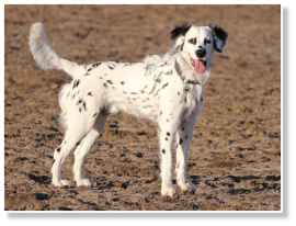 Tüpfelung eher an einen ursprünglichen, statt an einen neumodisch gezüchteten Dalmatiner erinnert. Trotz seines Fleckenreichtums, hat er nicht einen zusammenlaufenden Tupf. Alle