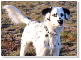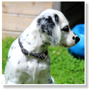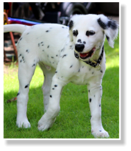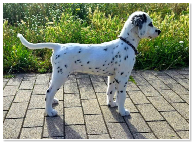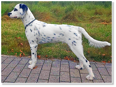 Tüpfelung eher an einen ursprünglichen, statt an einen neumodisch gezüchteten Dalmatiner erinnert. Trotz seines Fleckenreichtums, hat er nicht einen zusammenlaufenden Tupf. Alle
