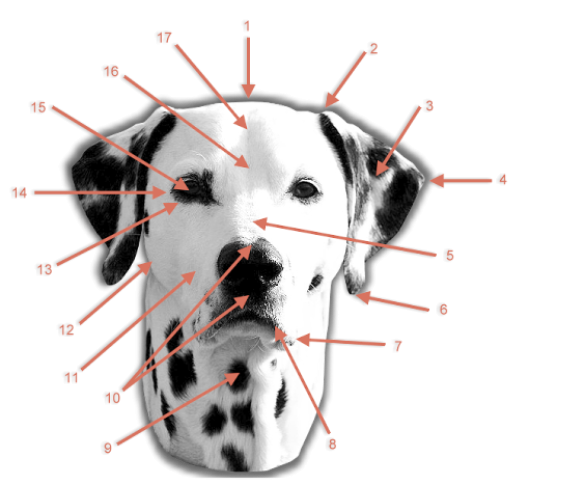17. Stirn (flach, schwache Stirnfurche)