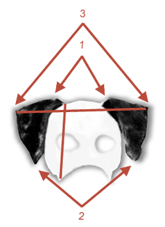 4. Ohr (auf Höhe des inneren Augenwinkels oder Stop, Form eines