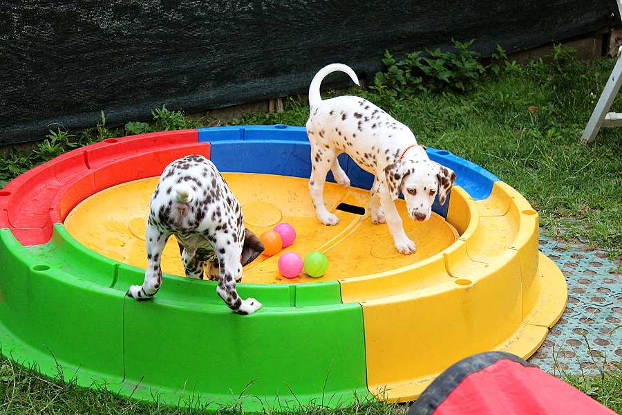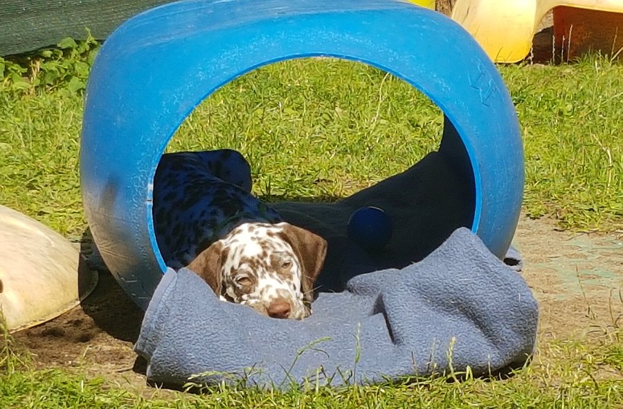 Erziehung im Welpenalter sowie viele Eindrücke sind enorm wichtig, um den Kleinen den besten Start ins Leben zu geben. Dazu gehören Geräusche, Materialien, Untergründe und noch vieles mehr. Ab der 6ten Woche gehe ich mit allen Welpen nebst Eltern in ausgewählte Auslaufgebiete. So lernen sie früh Toleranz, Akzeptanz aber auch Ablehnung durch andere Hunde. Die Elterntiere zeigen ihnen wie sie es richtig machen.